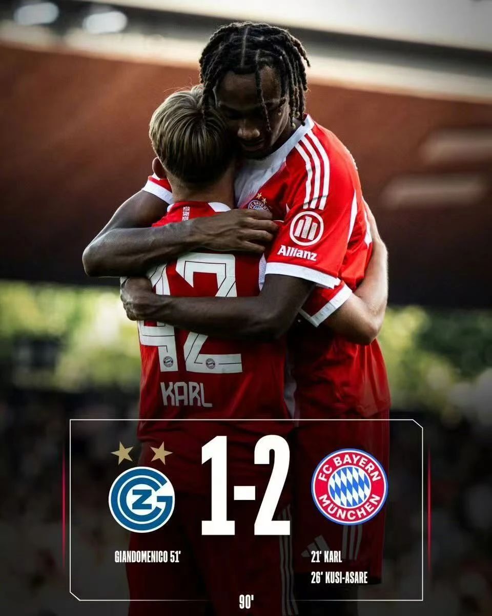 北京时间8月13日00:00,拜仁慕尼黑在季前最后一场热身赛中,以2-1力克苏黎世草蜢,为即将到来的新赛季和超级杯打下良好开端。